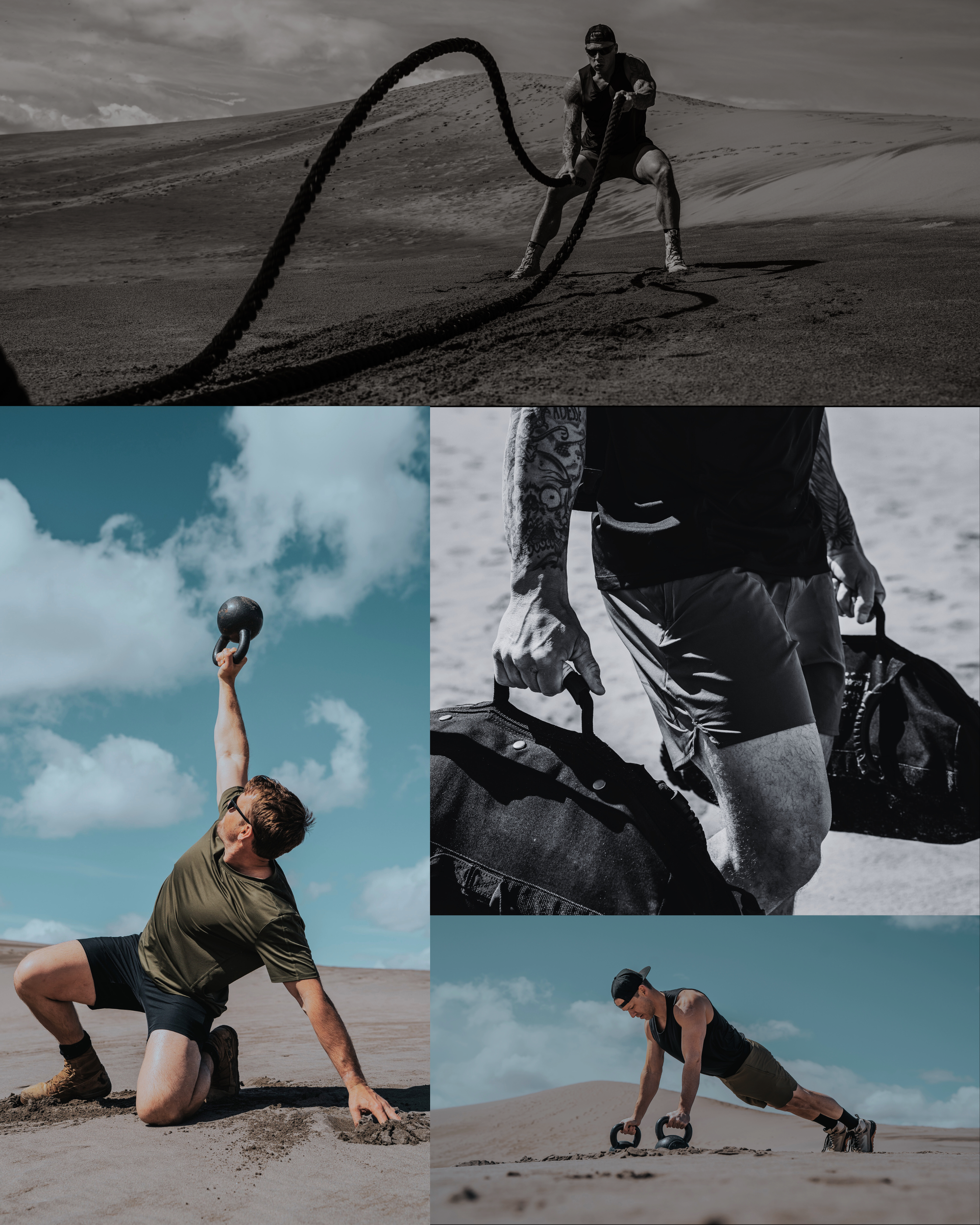 The combination of soft sand, relentless heat, and open challenge struck a familiar chord, echoing experiences from my time in the military. It drew us here to put our gear to the ultimate test. With heavy ropes, sandbags, and kettlebells in tow, we assembled a team of current and former military personnel alongside a select group of civilian endurance athletes to train together in this environment.